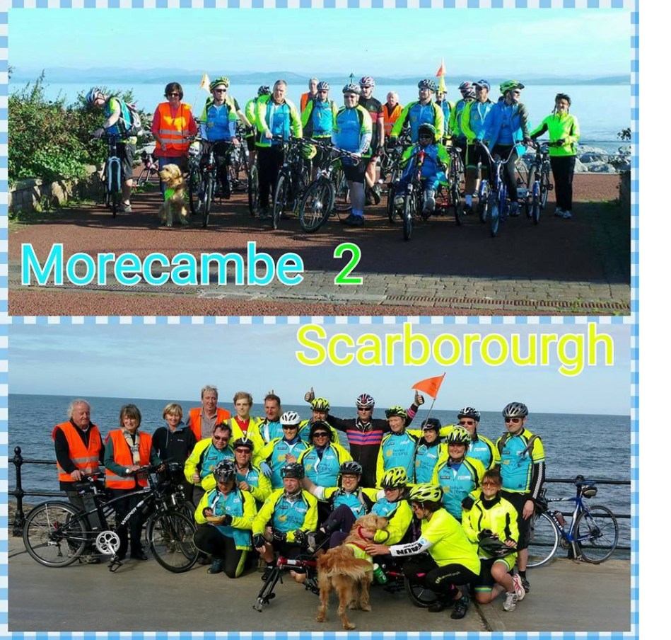 There was a big gasp as we came round the corner and saw the sea! There were tears of joy even before we had stopped. Arriving on the prom, it sank in ……..WE HAD DONE IT! We had travelled from Morecambe to Scarborough 152.6 miles with over 7300ft elevation gain. Simply an epic journey by some awe inspiring individuals who over come their own personal struggles to achieve this totally amazing challenge.
